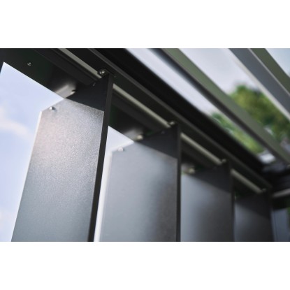 La parete laterale a lamelle Biohort in Grigio scuro metallizzato per la pergola della dimensione 3 m è il complemento ideale per il tuo spazio esterno. Può essere regolata manualmente e offre una protezione affidabile contro il vento e le intemperie.