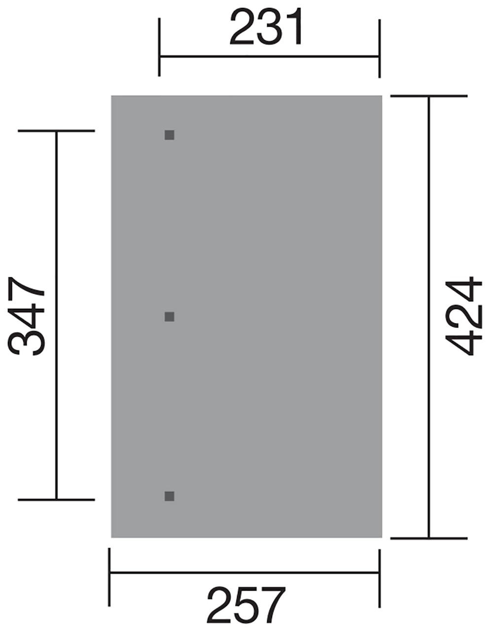 - Dimensioni con sporgenza del tetto incl.: 424 x 257 cm (L x P)