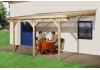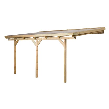 La copertura poggia su tre pali con spessore di 9 x 9 cm e viene montata su un muro. Pertanto, ha un supporto ottimale. Il tetto viene fissato alla sottostruttura mediante viti idrauliche con rondelle di tenuta sagomate e distanziatori (inclusi nella fornitura). La stabilità dell`intera struttura viene aumentata da connettori trave-arcareccio supplementari. La copertura per terrazza in legno è impregnata in autoclave e quindi protetta in modo affidabile da intemperie, infestazioni fungine e da insetti. Per un fissaggio sicuro nel terreno, si consigliano tiranti ad H (venduti separatamente).