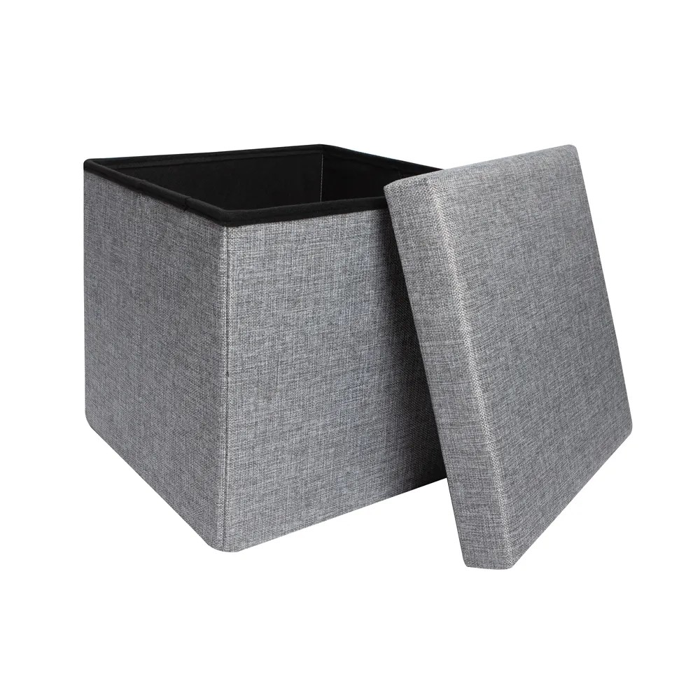 Pouf contenitore pieghevole tessuto grigio chiaro 38x38 cm