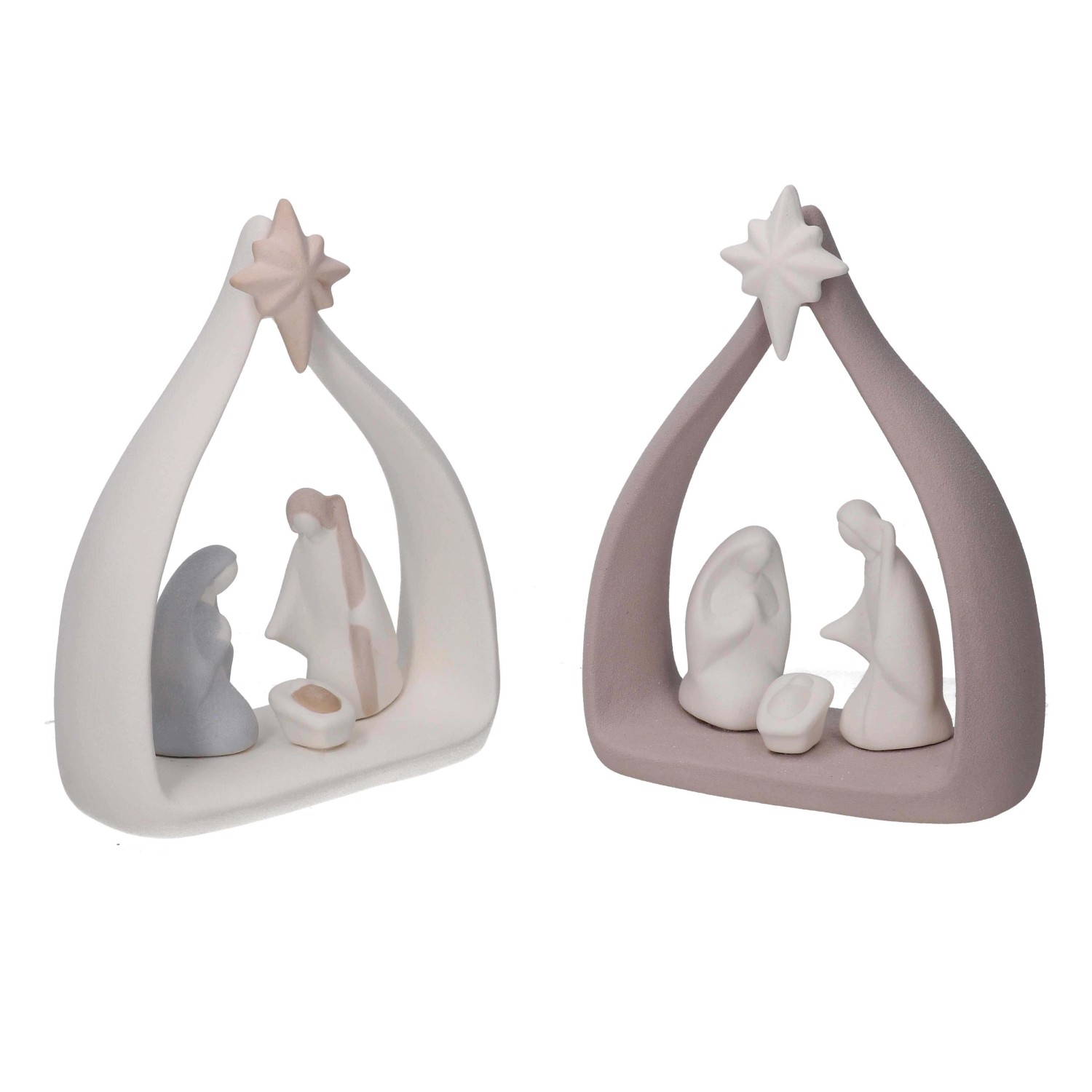 Natività in ceramica bianca 2 assortiti 13,5x6,5xh17 cm