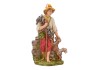 Questo pastore, caratterizzato da un cappello giallo e appoggiato al suo bastone, è accompagnato dal suo fedele cane, che lo aiuta nella conduzione del gregge. La figura simboleggia la relazione tra l`uomo e il suo animale da lavoro, evocando il legame di fiducia e collaborazione tipico della vita pastorale. Questo personaggio aggiunge un tocco di autenticità e calore alla scena del presepe, richiamando la semplicità e l`armonia della vita quotidiana dei pastori.