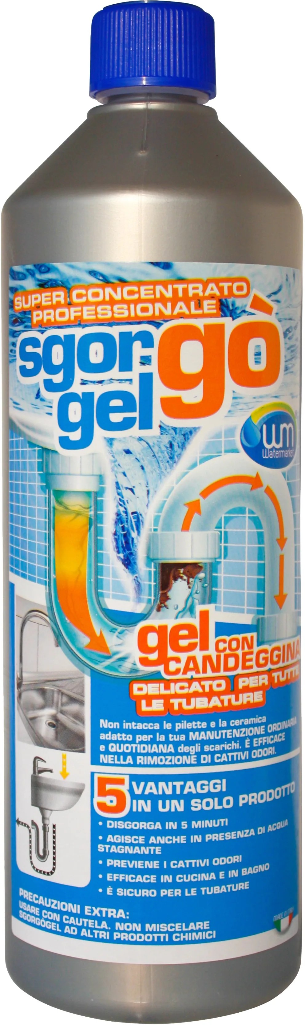 Disgorgante idraulico liquido gel con candeggina che rimuove gli ingorghi e mantiene gli scarichi liberi e funzionanti. Non intacca la piletta e la ceramica ed è sicuro per le tubature. Ottimo anche nella prevenzione dei cattivi odori e sicuro sulle tubature, aiutando ad allungarne la durata. Se usato regolarmente, aiuta a mantenere le tubature sempre pulite e ben funzionanti.