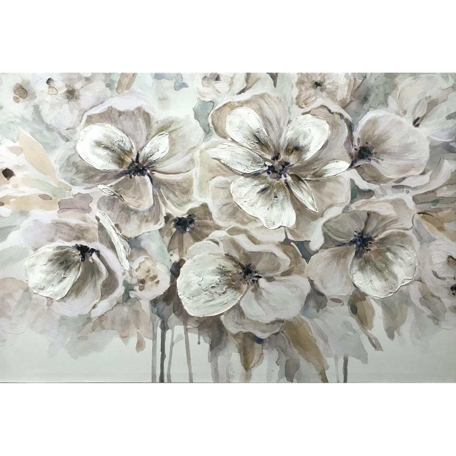 Canvas semi-dipinto dalla forma rettangolare, soggetto Fiori Rosa. Misura: 60x90 cm.