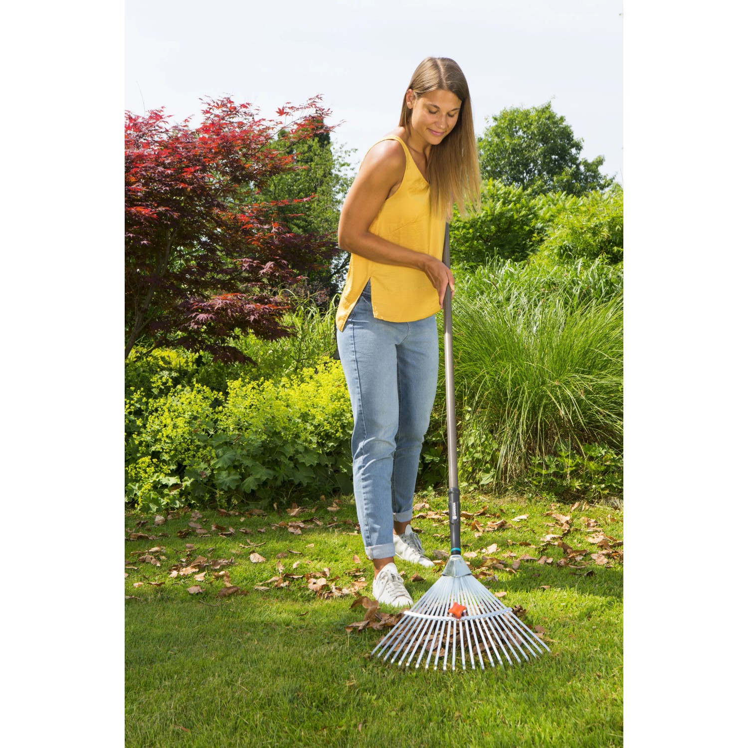 Il rastrello in metallo regolabile NatureLine GARDENA è perfetto per rastrellare foglie, sfalci, materiale di arieggiatura e altri rifiuti del giardino.