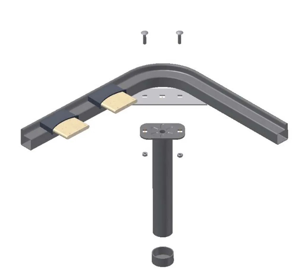 Gli angoli della rete sono realizzati in tubo piegato, mentre le quattro piastre agli angoli sono dotate di fori per il fissaggio dei piedini, garantendo stabilità e sicurezza all`utilizzatore. I piedi, con un diametro di 40 mm, sono provvisti di contropiastra per un fissaggio sicuro alla struttura.