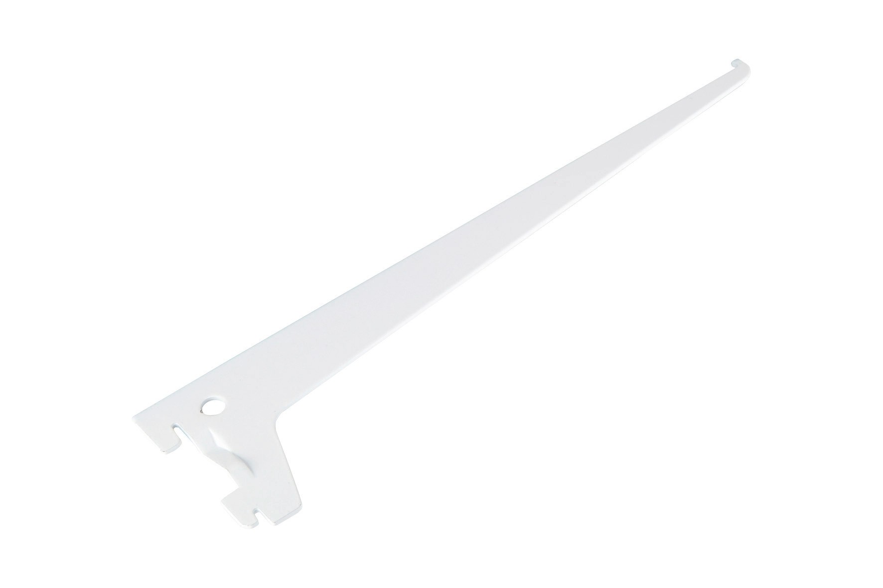 Supporto semplice adatto alla realizzazione di singoli scaffali con due guide e ripiani per scaffali con distanza tra i fori di 50 mm. Dotato di due ganci per appenderlo, si può utilizzare sia come supporto di ripiani in acciaio che in legno. Con un ulteriore accessorio è possibile applicare sui supporti anche lastre in vetro.