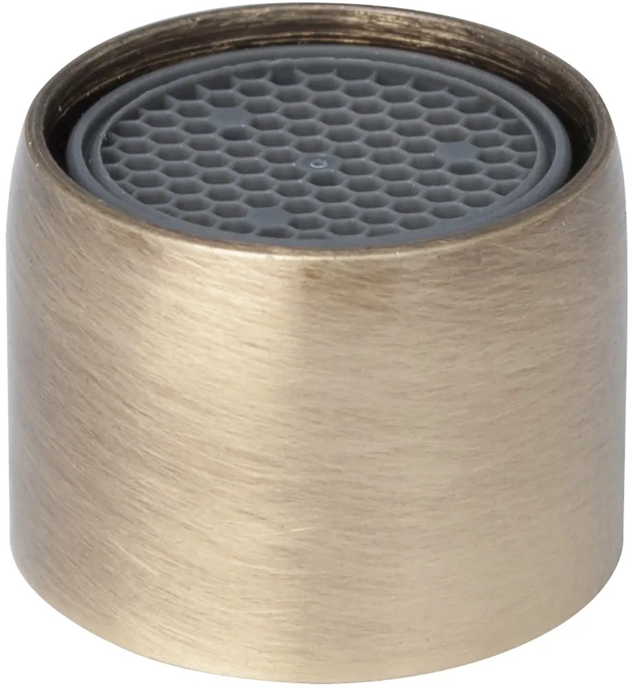 Rompigetto femmina in ottone anticato. L`utilizzo del rompigetto permette di ridurre il consumo d`acqua in quanto la miscelazione con l`aria aumenta il volume del fluido in uscita. Il getto sarà quindi soffice e regolare.