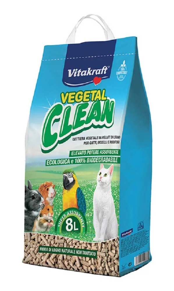 La lettiera per gatti Vegetal Clean è una lettiera igienica universale ideale per gatti, uccelli e roditori. E` un prodotto totalmente , a base di fibre vegetali ricavate da legno di conifere non trattato. Non contiene additivi chimici, è quindi e al 100%.