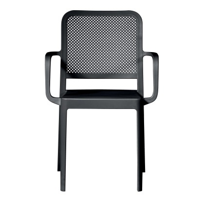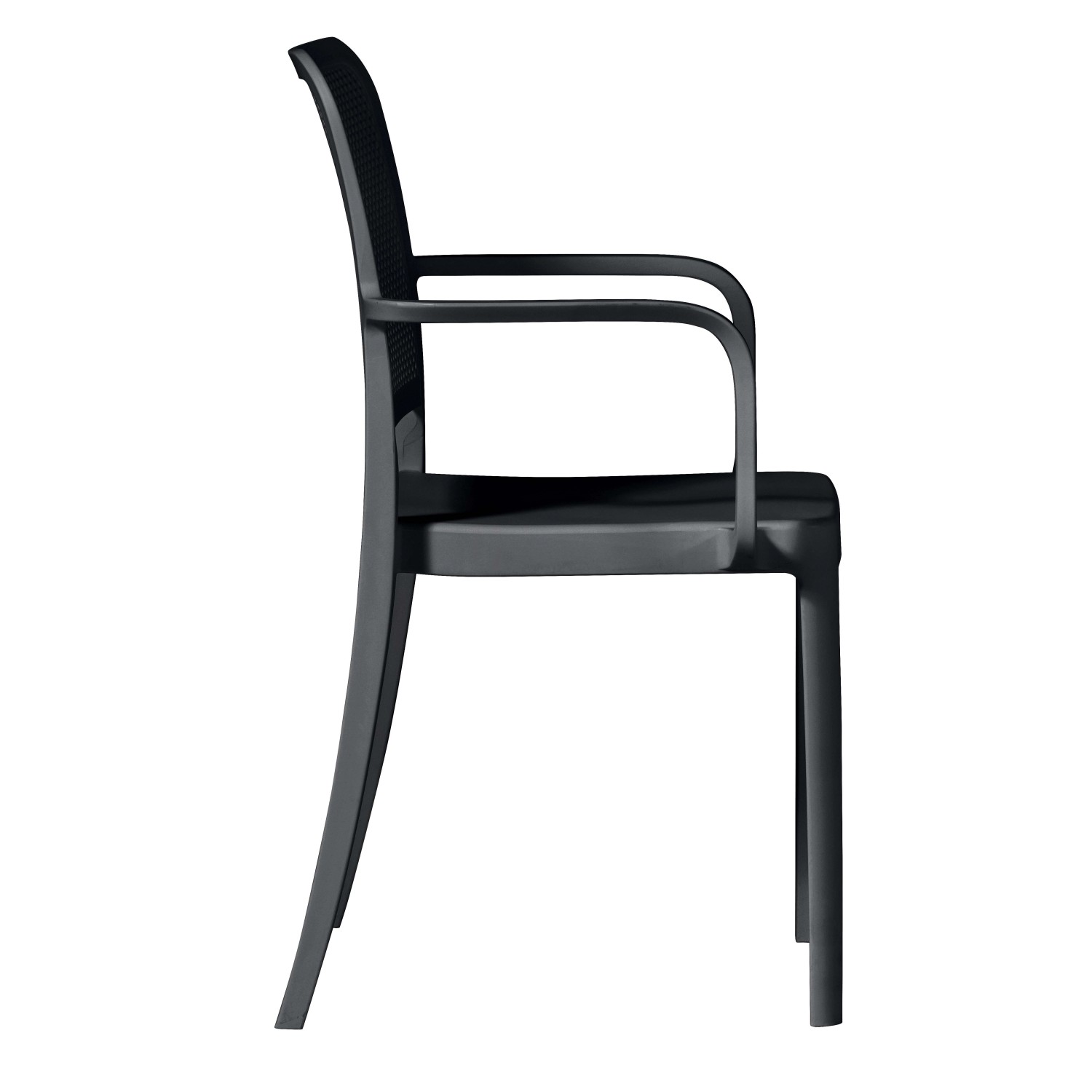 Sedia da giardino forata con braccioli impilabile in polipropilene nera