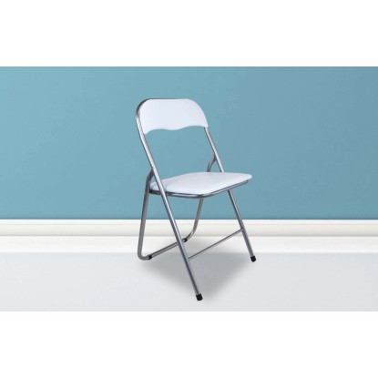 Set 6 pz Sedia pieghevole con struttura in acciaio - seduta e schienale in PVC con imbottitura - tubo grigio - tubo diam.22x0,8 mm. BIANCA