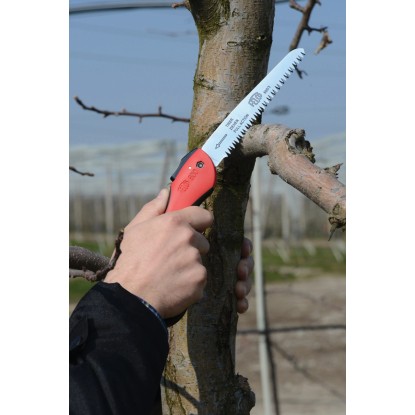 Il segaccio serramanico per potatura Felco 600 è uno strumento professionale progettato per la potatura precisa degli alberi e delle piante. Ecco una descrizione delle sue caratteristiche principali: Lama di alta qualità: La lama del segaccio è realizzata in acciaio temperato inossidabile cromato. Questo materiale di alta qualità conferisce alla lama una notevole resistenza alla corrosione e una durata prolungata. La lama ha una forma conica che permette di eseguire tagli precisi e netti. Trattamento termico dentatura: La dentatura della lama è soggetta a un trattamento termico che ne migliora la durezza e la resistenza. Ciò significa che il segaccio è in grado di tagliare con precisione anche il legno più duro e resistente. Manico comodo antiscivolo: Il manico del segaccio è progettato per offrire una presa comoda e antiscivolo durante l'uso. Questo permette di lavorare in modo efficiente e senza affaticare eccessivamente le mani. Lama di 160 mm: La lama ha una lunghezza di 160 mm, che offre una lunghezza sufficiente per eseguire tagli profondi e precisi durante la potatura.
