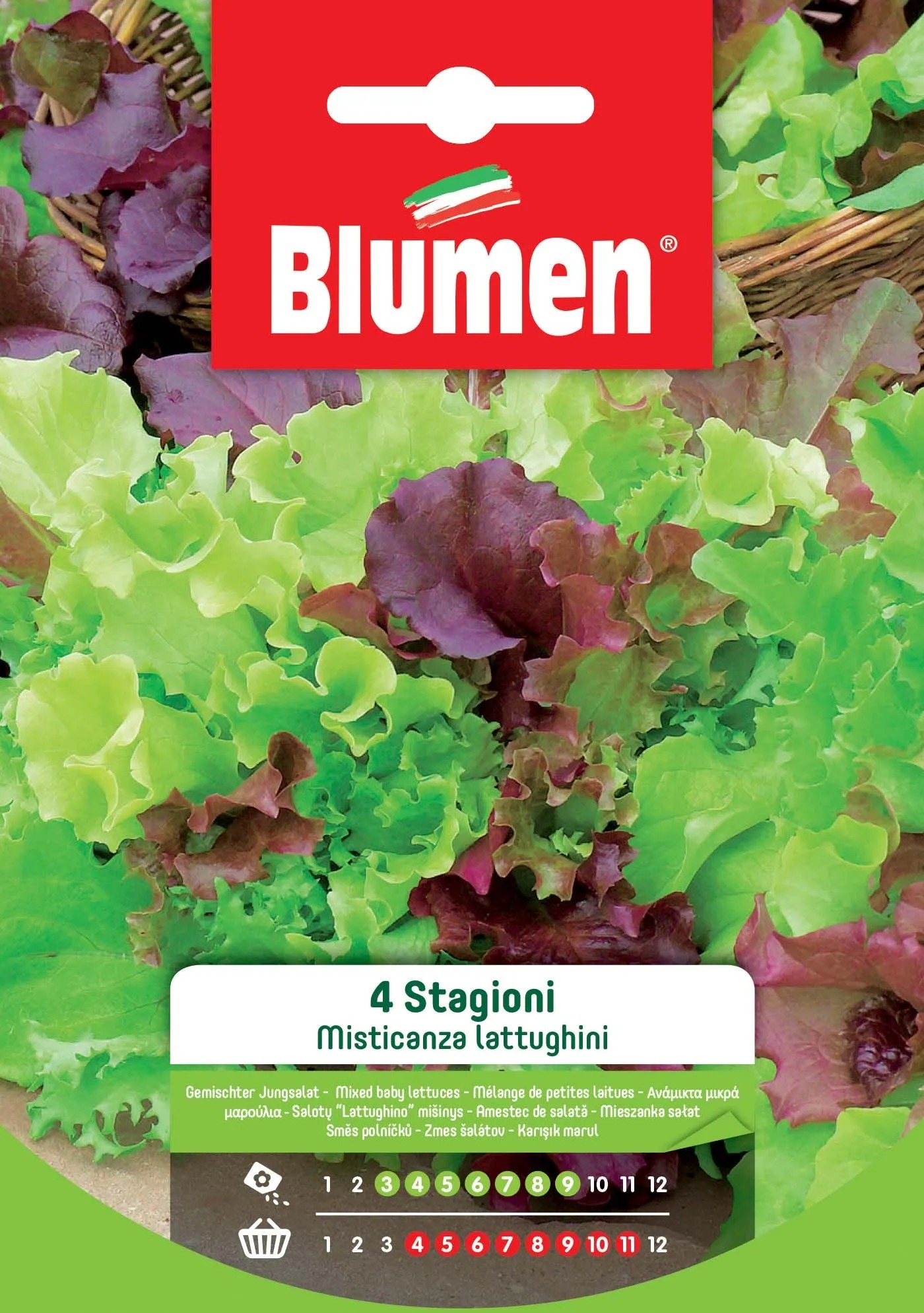 È un miscuglio di lattughini da taglio, indicato per semine primaverili, estive, autunnali. Si utilizzano le foglie tagliandole a circa 2 cm dal suolo quando le piantine hanno raggiunto i 5/6 cm di altezza, ricaccia rapidamente.