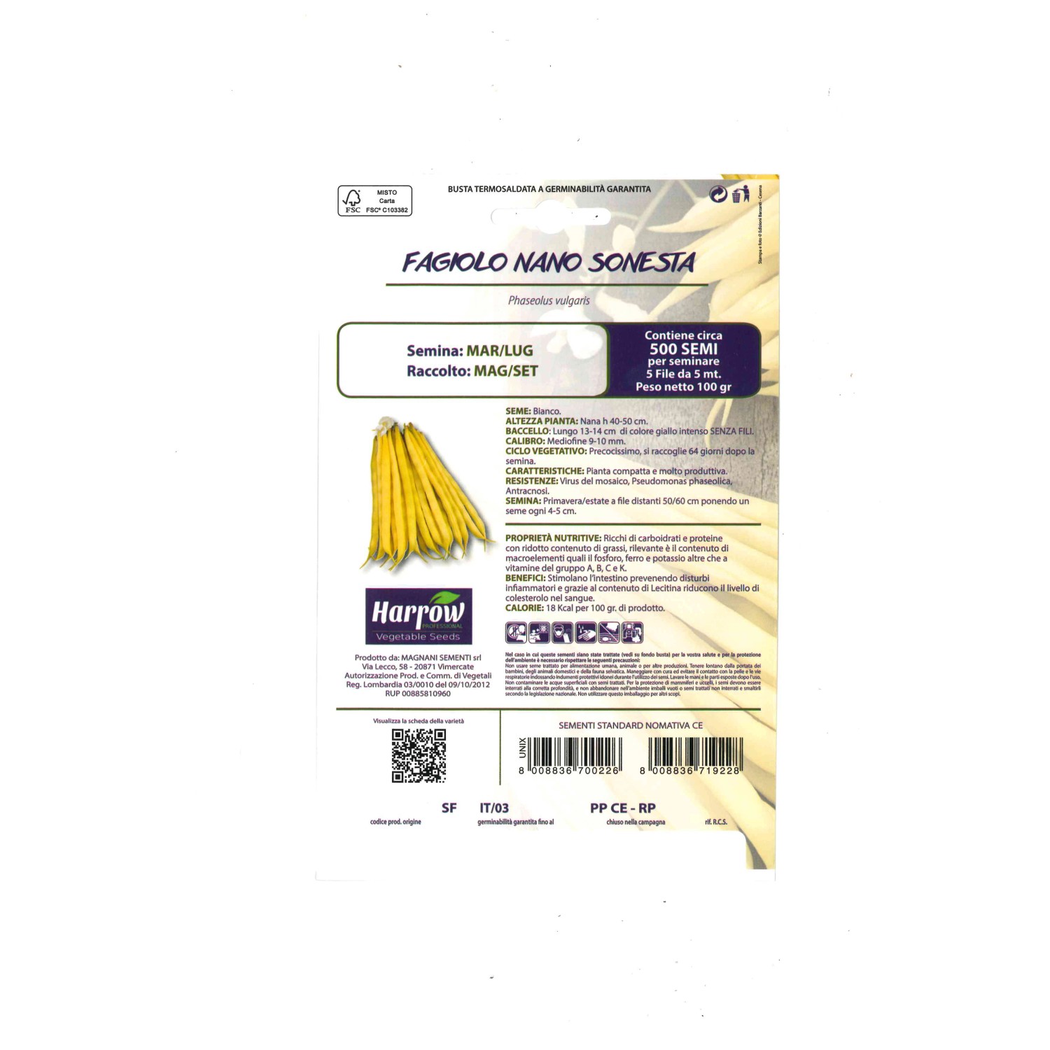 La confezione contiene un numero variabile di semi e fa parte della linea di legumi Harrow.