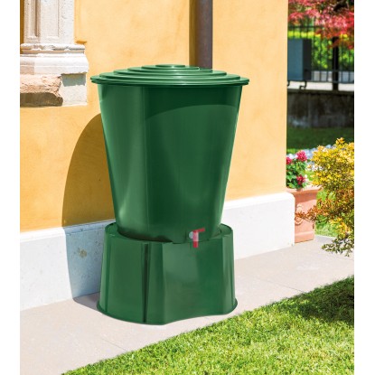 Supporto in polietilene per contenitori di recupero ed economico dell`acqua piovana. Questo prodotto solleva il serbatoio d`acqua in modo che l`acqua possa passare facilmente attraverso il rubinetto.