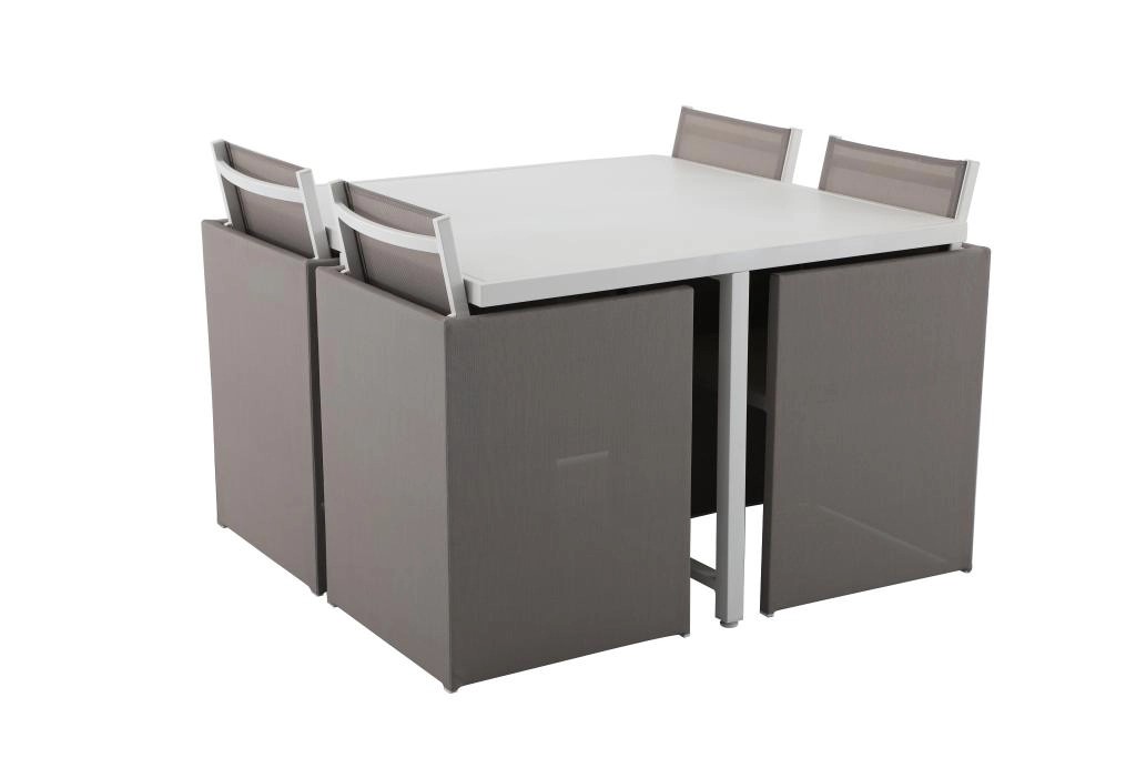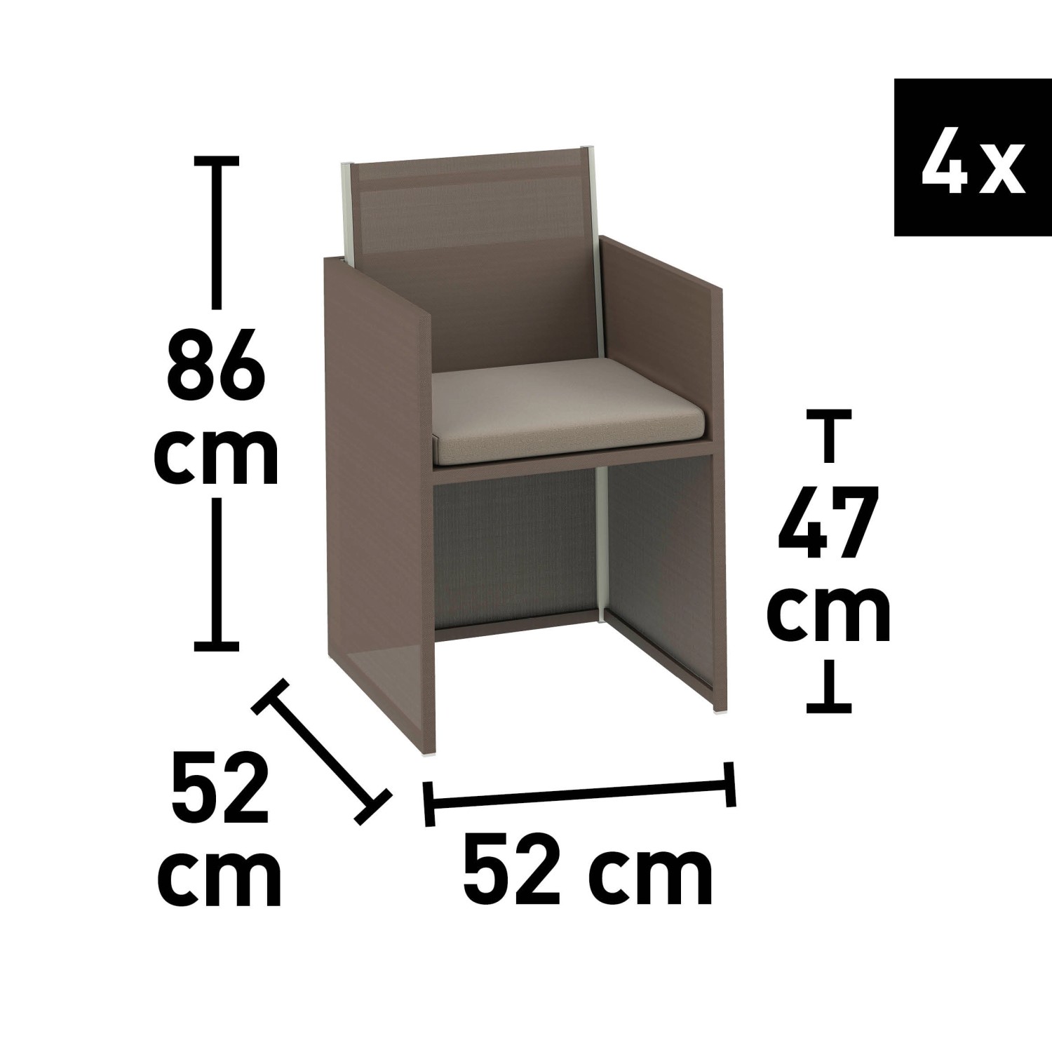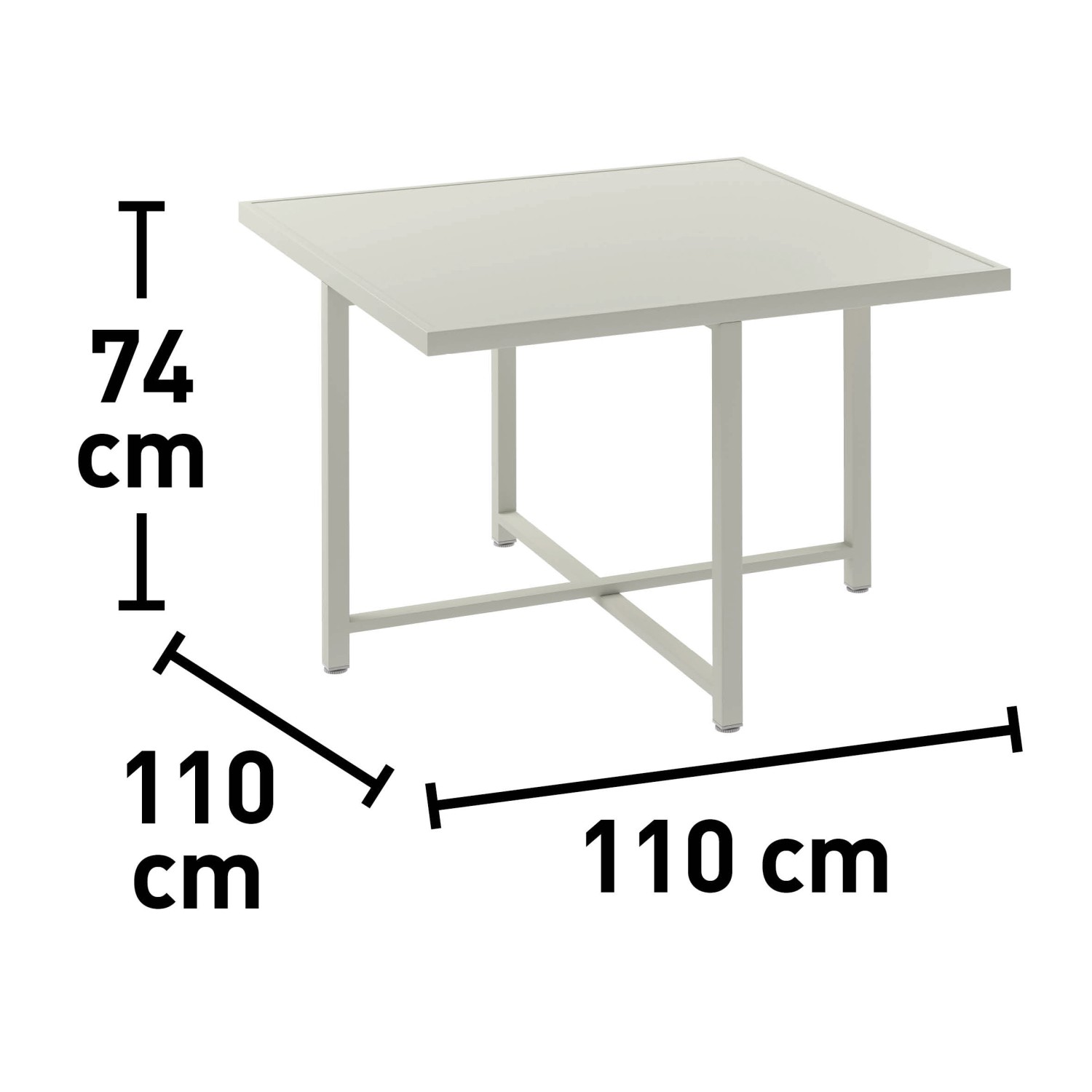 Il set pranzo descritto è un insieme di mobili da esterno progettato per offrire uno spazio confortevole per pranzare o cenare all'aperto. Ecco le sue principali caratteristiche: Materiali: Il set è composto principalmente da acciaio e textilene. Questi materiali sono scelti per la loro resistenza e durabilità all'uso esterno. L'acciaio è solido e resistente alla corrosione, mentre il textilene è un tessuto sintetico che è traspirante, resistente agli agenti atmosferici e confortevole. Composizione: Il set pranzo è composto da 5 pezzi, che generalmente includono 4 poltrone e un tavolo. Questo offre un posto a sedere per quattro persone, ideale per piccoli gruppi. Dimensioni delle poltrone: Le poltrone hanno le seguenti dimensioni: Larghezza (L) 52 cm, Profondità (P) 52 cm e Altezza (H) 86 cm. Le poltrone sono confortevoli e presentano uno schienale reclinabile, il che significa che è possibile regolare l'inclinazione dello schienale per trovare la posizione più comoda. Colore: Le poltrone sono di colore tortora, che è un colore neutro che si abbina bene a molte diverse ambientazioni esterne. Il tortora è spesso scelto per la sua eleganza e versatilità. Dimensioni del tavolo: Il tavolo ha le seguenti dimensioni: Lunghezza (L) 110 cm, Larghezza (L) 110 cm e Altezza (H) 74 cm. Il piano del tavolo è realizzato in vetro verniciato di bianco, il che aggiunge un tocco di modernità e stile al set. La sua forma quadrata fornisce ampio spazio per i piatti e i bicchieri durante i pasti.