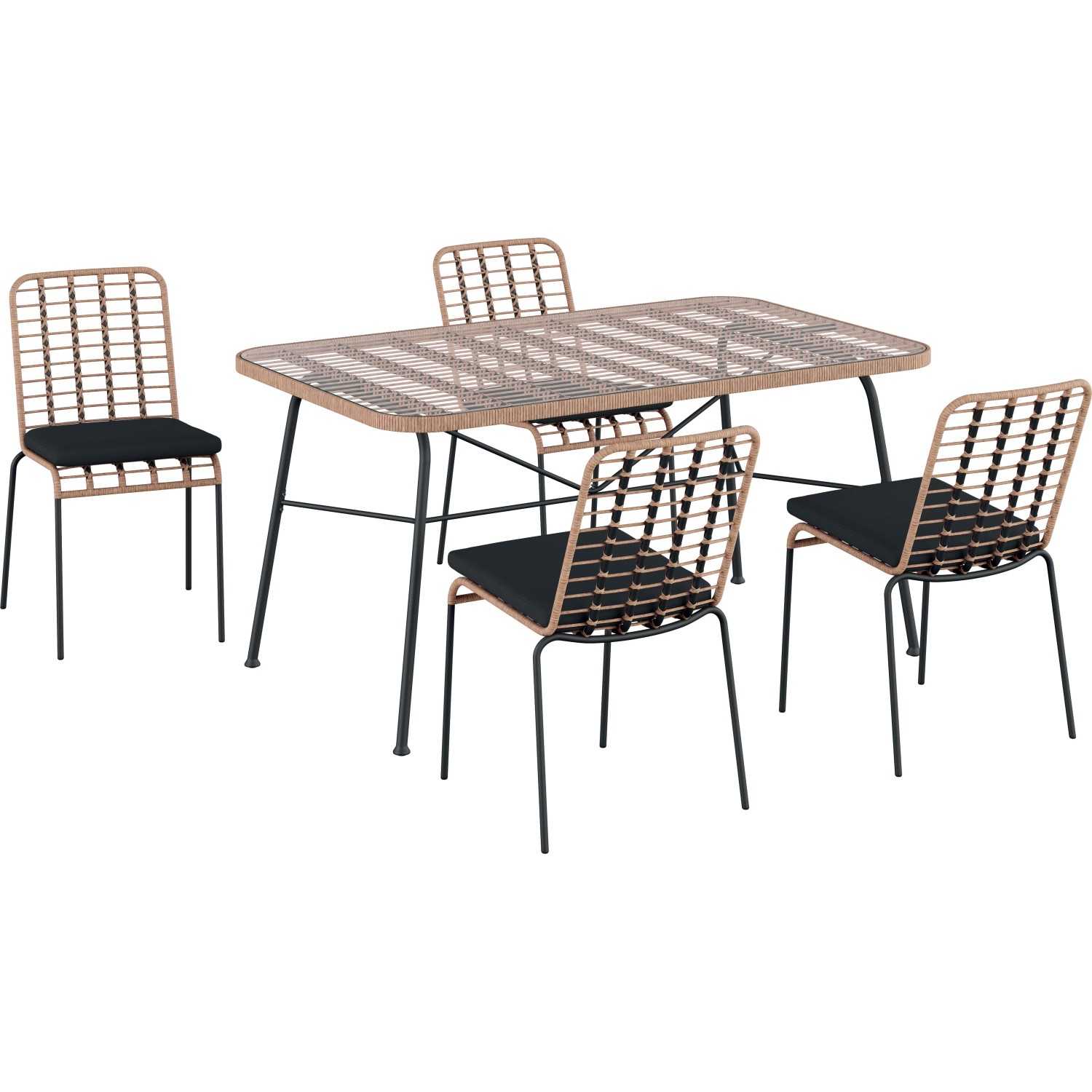 Tavolo e sedie da giardino in acciaio e rattan antracite 4 posti
