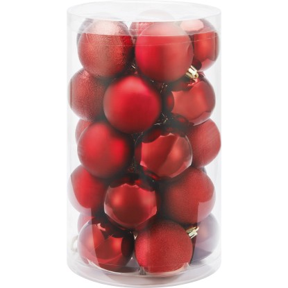 Vuoi decorare il tuo albero di Natale e cerchi una decorazione che non sia solo bella, ma anche resistente? Allora questo set di palline di Natale da 25 pezzi in rosso Borgogna è perfetto per te. Le palline sono realizzate in materiale sintetico robusto e resistono senza problemi a piccoli urti e cadute. In questo modo puoi riutilizzarle anno dopo anno. Scegli questo set versatile e trasforma la decorazione del tuo albero di Natale in un piacere semplicissimo. Sono ideali non solo per l'albero di Natale, ma anche per composizioni floreali o come decorazione per finestre.