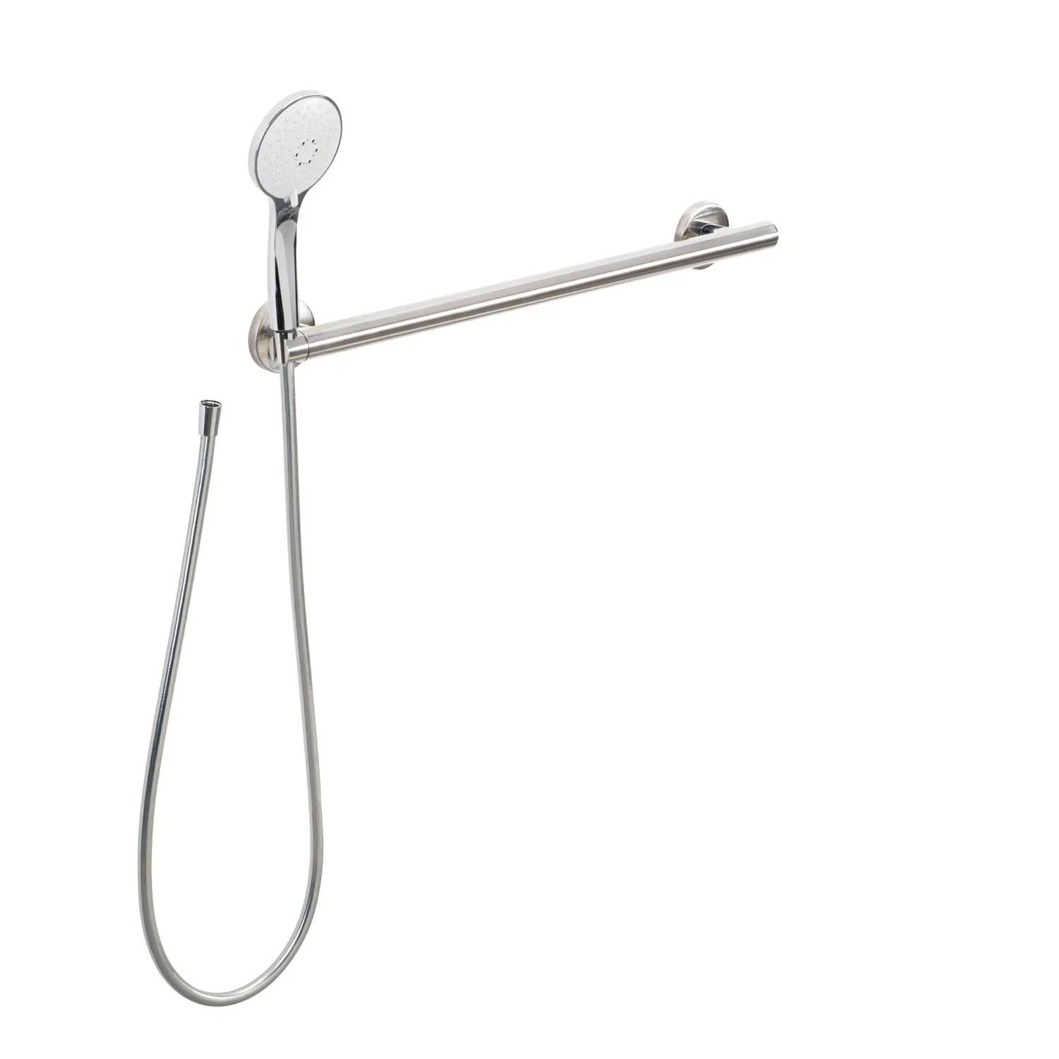 Maniglione lineare Ada in acciaio lucido con supporto doccia sx