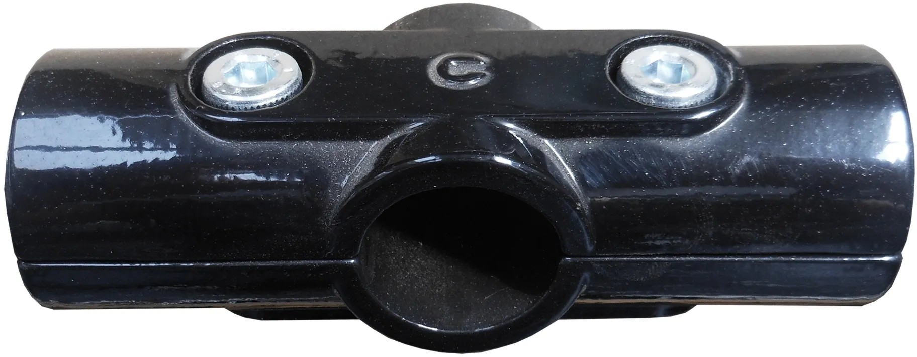 Giunto lineare a 3 vie per tubo Ø 25 mm realizzato in metallo fuso colore nero. Compatibile con sistema modulare Prisma & cubic