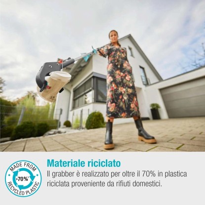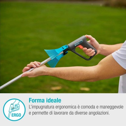 Grazie alla sua lunghezza di 94.5 cm, permette la raccolta di rifiuti da giardino mantenendo una postura eretta e comoda. L`impugnatura ergonomica si adatta perfettamente alla mano e, grazie alla sua funzione girevole, permette di lavorare da diverse angolazioni, risultando particolarmente utile per la raccolta di foglie o rifiuti in posizioni difficili.