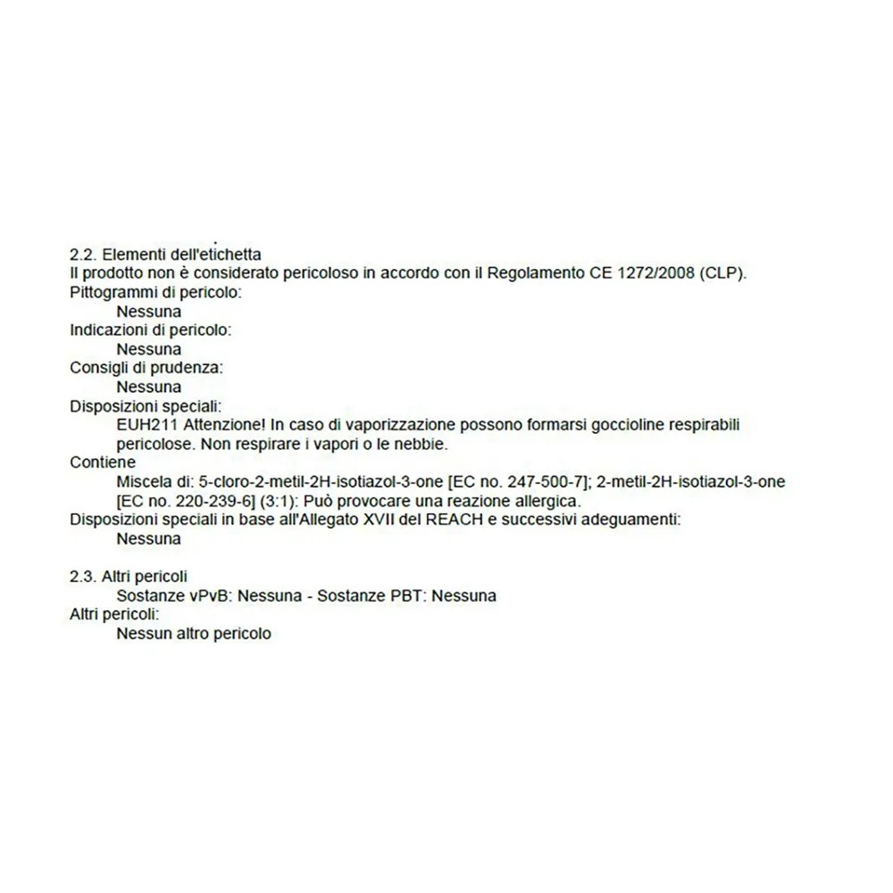 | Adatto per allergici all'isotiazolinone: | Non adatto |