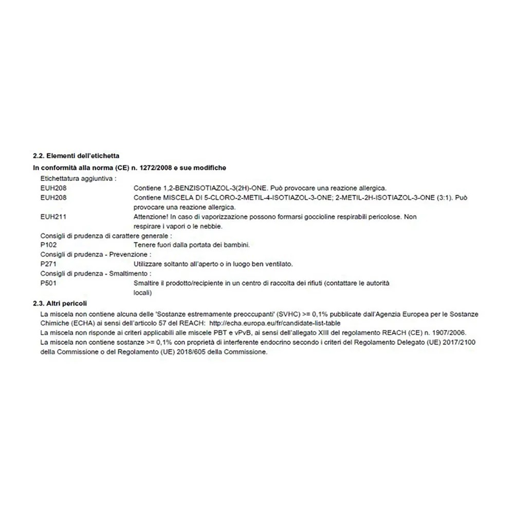 | Adatto per allergici all'isotiazolinone: | Non adatto |
