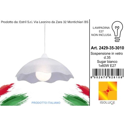 Scopri il fascino della Lampada a Sospensione Sugar in vetro bianco, un`illuminazione che unisce stile e funzionalità. Con un diametro di Ø 35 cm e un design elegante, questa lampada a sospensione è perfetta per aggiungere un tocco di classe e una luce raffinata a qualsiasi spazio.