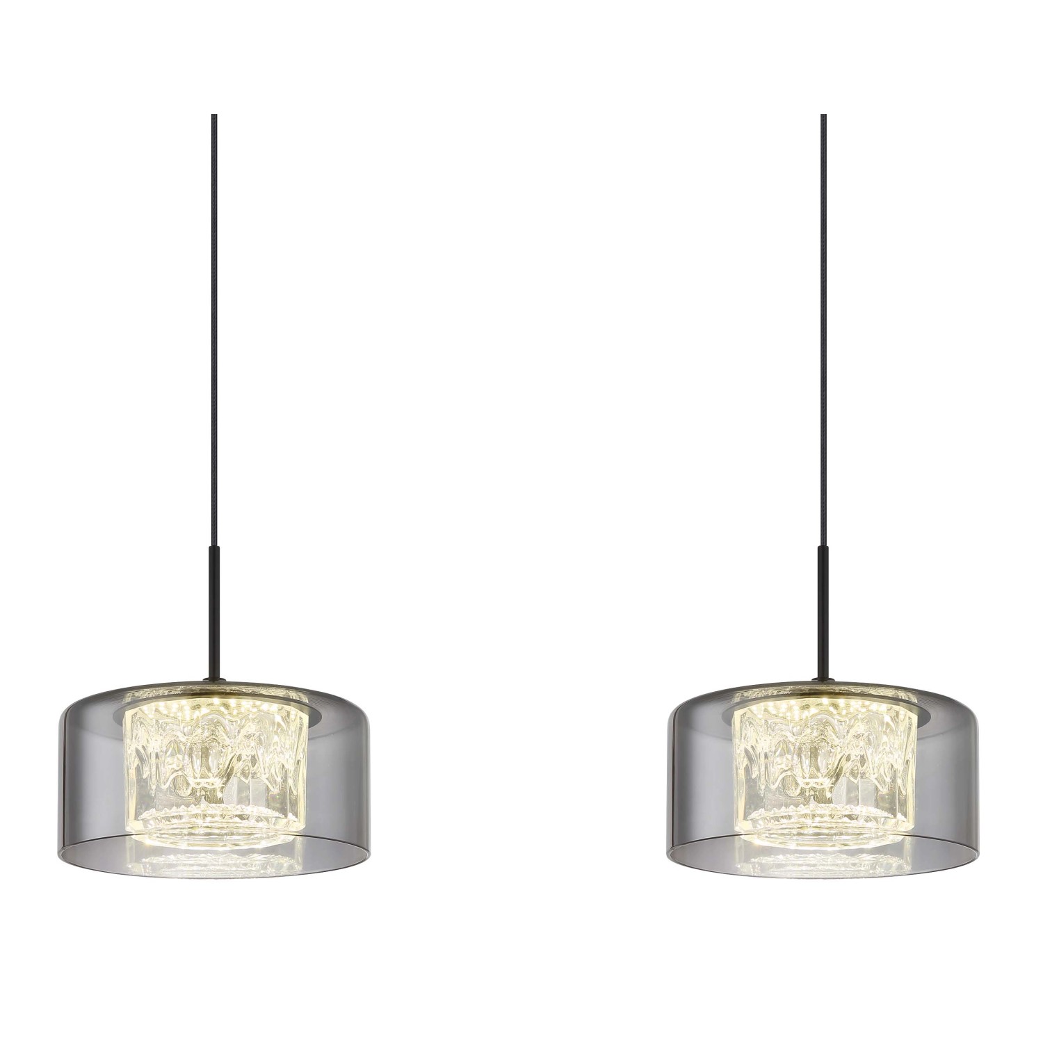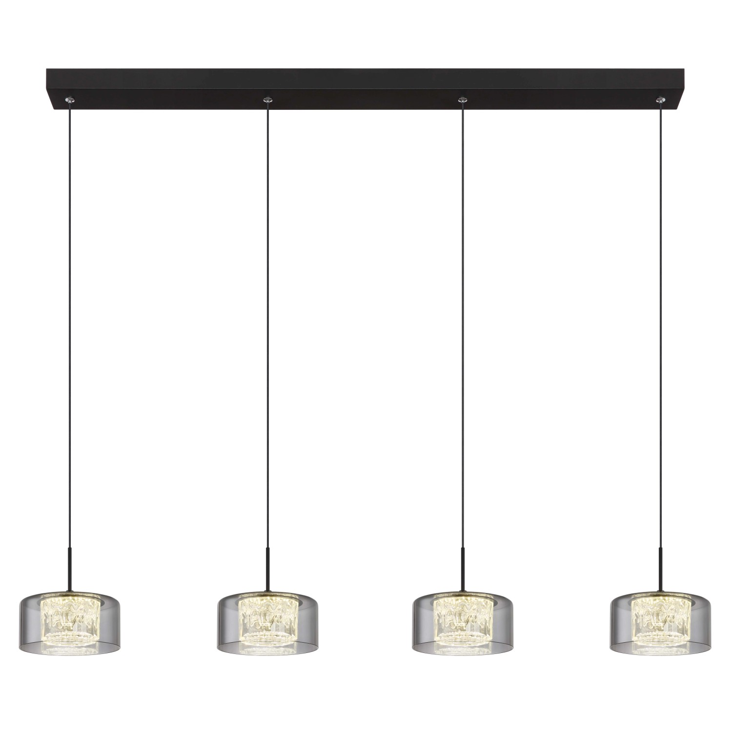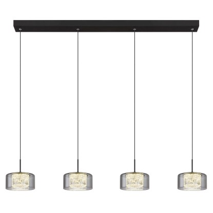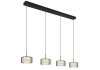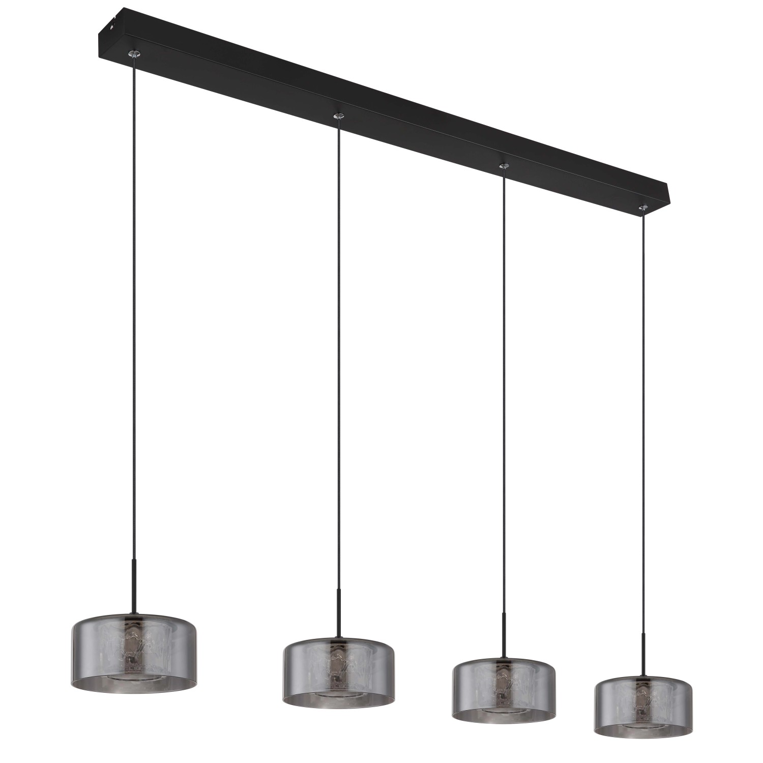La lampada a sospensione Fogsy in nero opaco è una soluzione d`illuminazione moderna ed elegante, pensata per valorizzare ambienti contemporanei con un tocco di classe. Il binario lineare con quattro punti luce e i paralumi in vetro fumé rivestiti internamente in acrilico trasparente assicurano una distribuzione luminosa omogenea e raffinata.Struttura in metallo nero opaco con design lineare e moderno