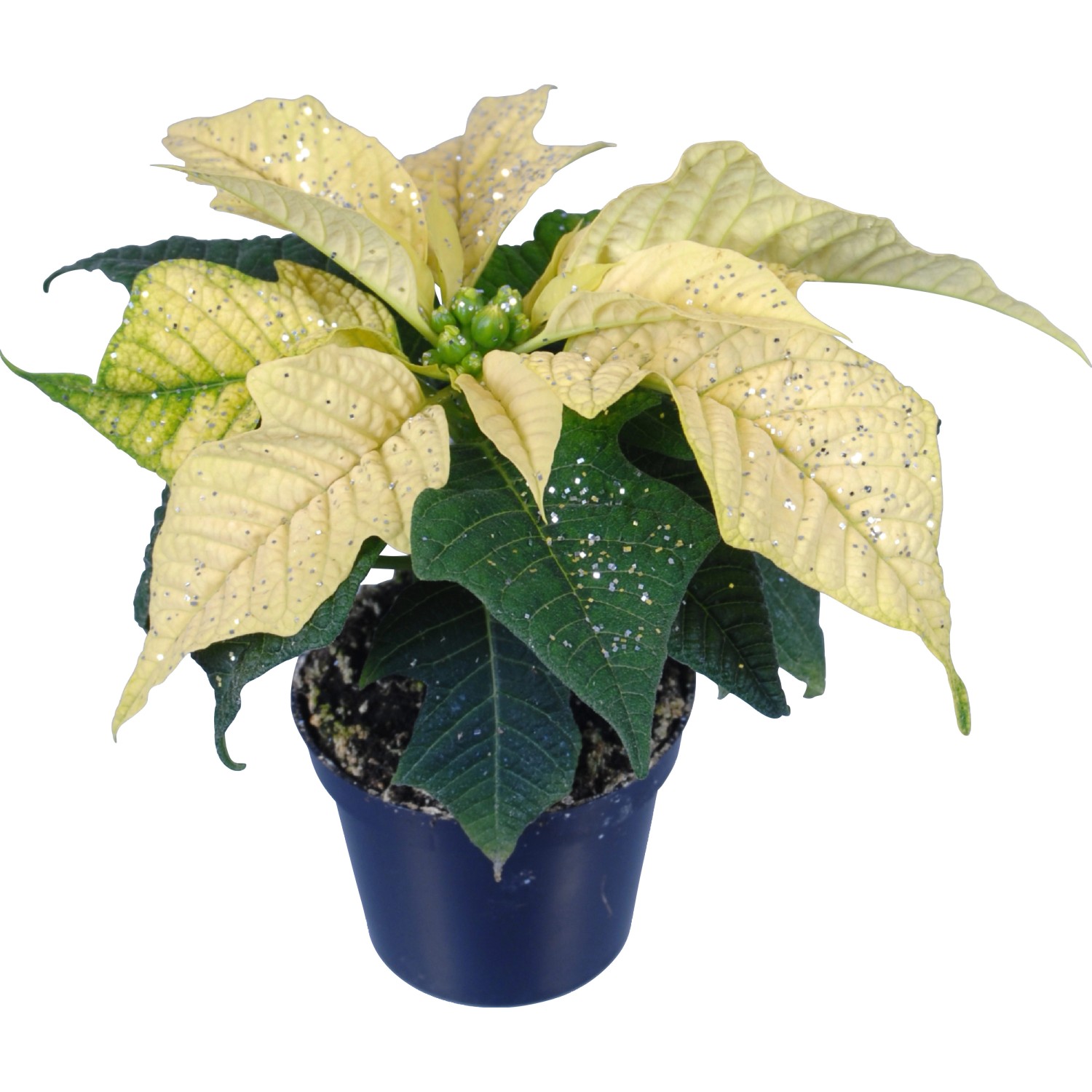 Stella di Natale mini bianca con glitter argentato vaso Ø 6 cm