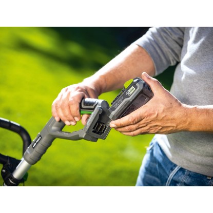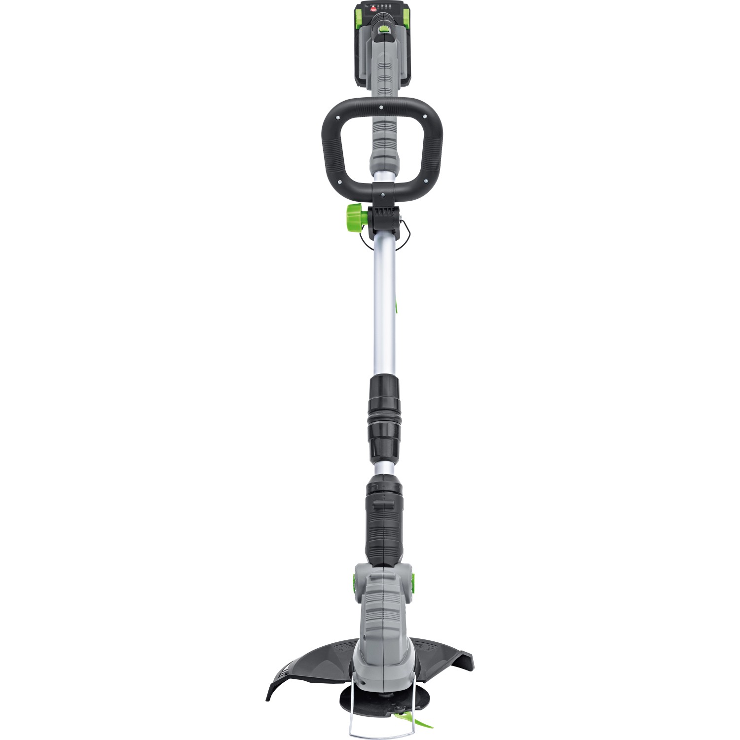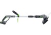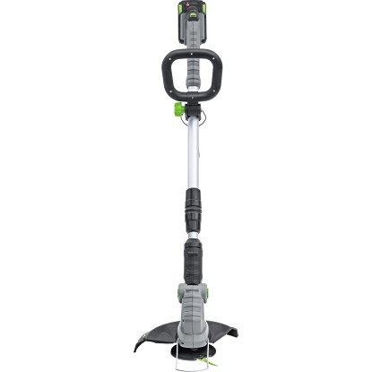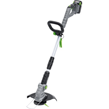 Inoltre, il tagliabordi a batteria è telescopico. Questa comoda regolazione dell`altezza permette di compensare le differenze di altezza. Un`altra caratteristica è l`impugnatura aggiuntiva, che consente la guida a due mani favorendo un lavoro confortevole.