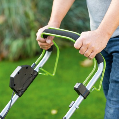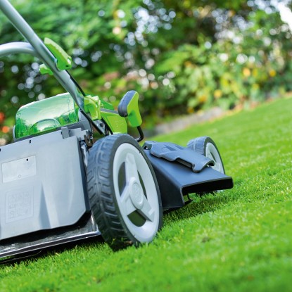 Larghezza piatto di taglio: 46 cm, produce un`ampia pista e consente di falciare rapidamente grandi aree erbose.