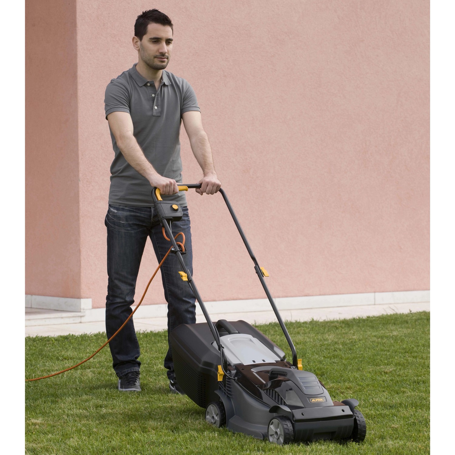 Il tagliaerba a spinta Alpina BL 320 E è alimentato da un motore elettrico da 1000 W ed è equipaggiato con un sacco di raccolta rigido da 25 litri. Questo tagliaerba ha una larghezza di taglio di 32 cm, l`altezza di taglio è regolabile in 3 posizioni, da 25 a 65 mm, agendo direttamente sulla regolazione dell`asse. Il manico è corredato di una pratica leva interruttore ed è ripiegabile per ridurre lo spazio occupato quando il tagliaerba non è in uso. Completa il comfort la pratica maniglia per il trasporto, posta sulla parte superiore del corpo macchina.