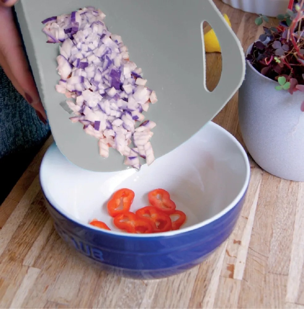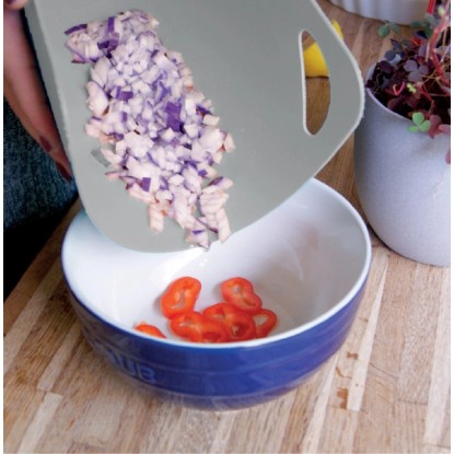 Tagliere flessibile che semplifica la preparazione di ogni pietanza, è realizzato in plastica di altissima qualità e resistente. È leggero e flessibile da poter essere usato per versare gli ingredienti tagliati, direttamente nella padella o nella pentola. Chop n Flex è disponibile in un pratico set di 3 misure utili per ogni esigenza.
