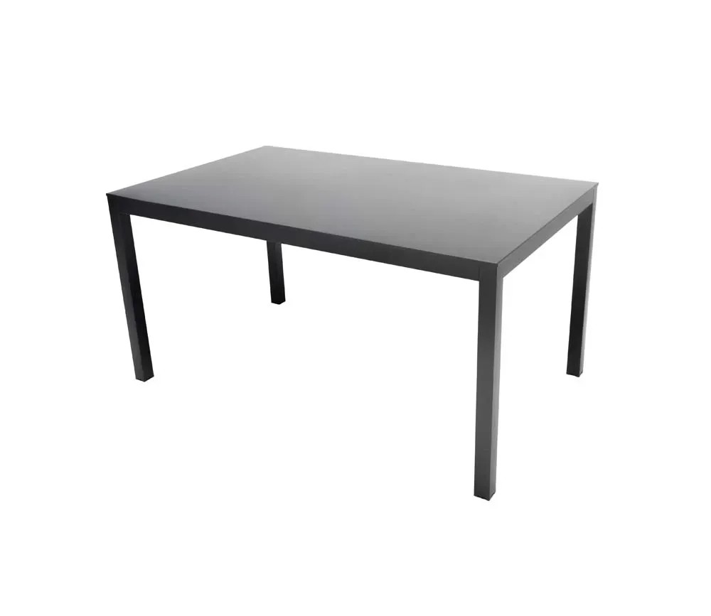 Tavolo Brunch 140x80x75h, top in lamiera. Telaio zincato verniciato poliestere nero opaco. Articolo da montare. Uso interno ed esterno. Colore: antracite