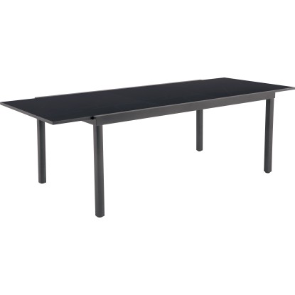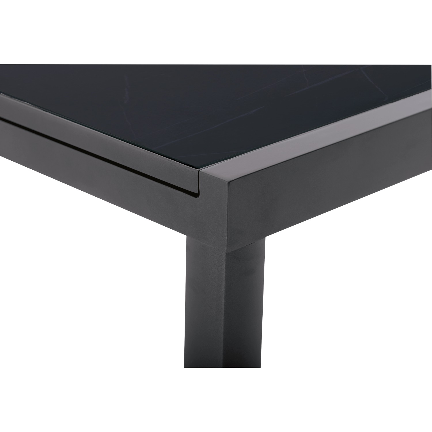 - Colore e Stile: Il colore nero del telaio si integra con eleganza nell`ambiente esterno, mentre il piano in vetro effetto marmo nero aggiunge un tocco di raffinatezza.