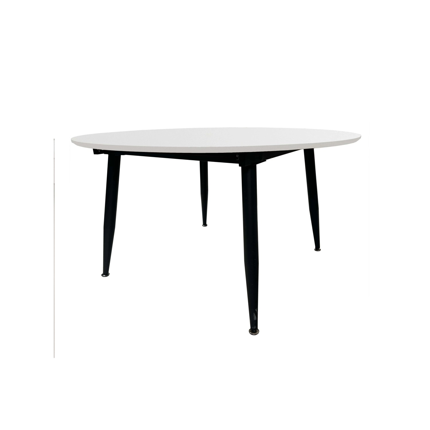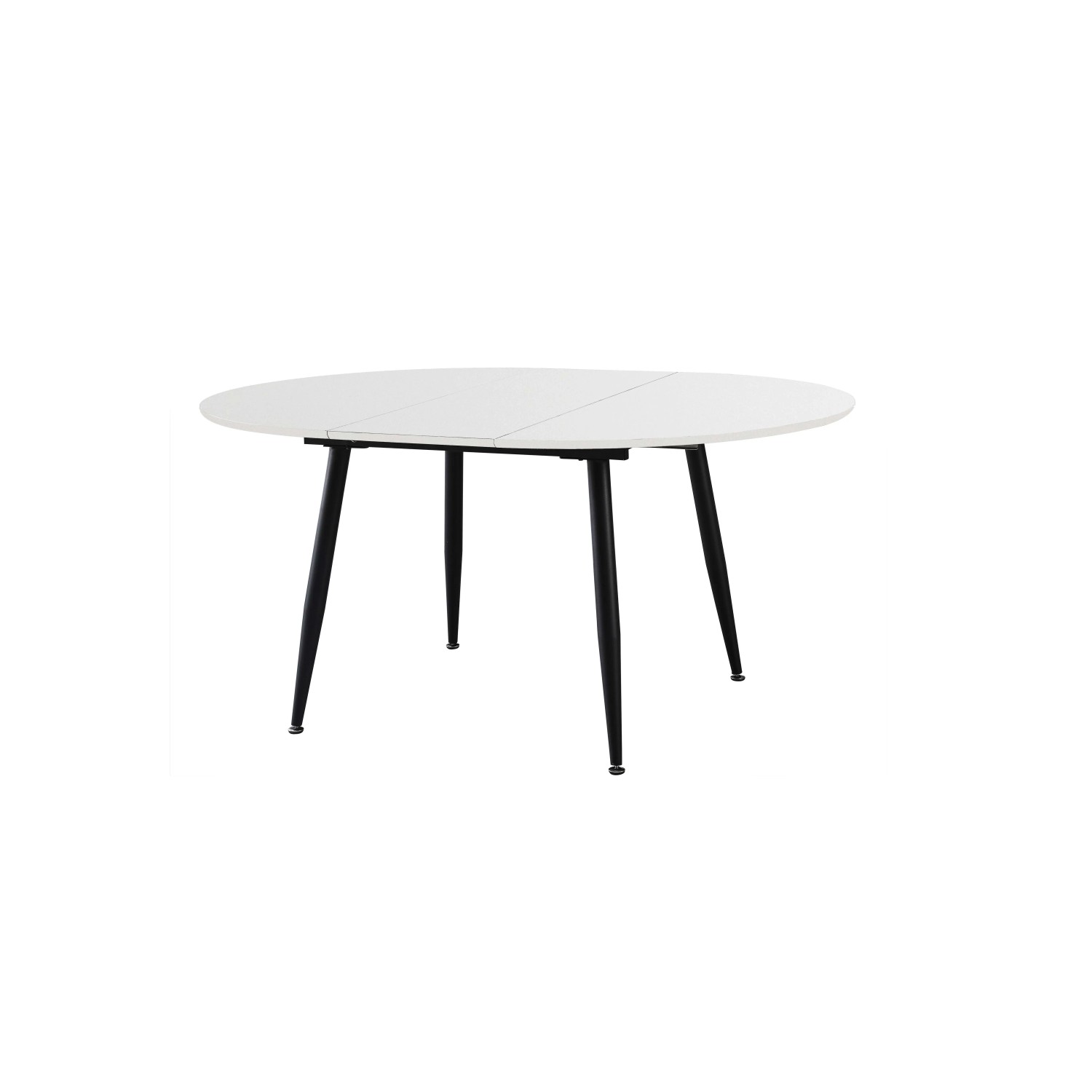 Tavolo tondo allungabile con gambe in metallo e piano in MDF rivestito. Misure chiuso ø120 H.75. Misure aperto L160 P120 H75