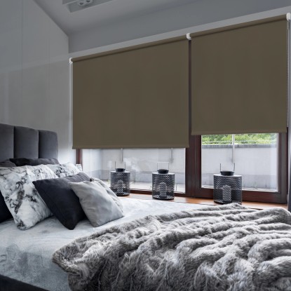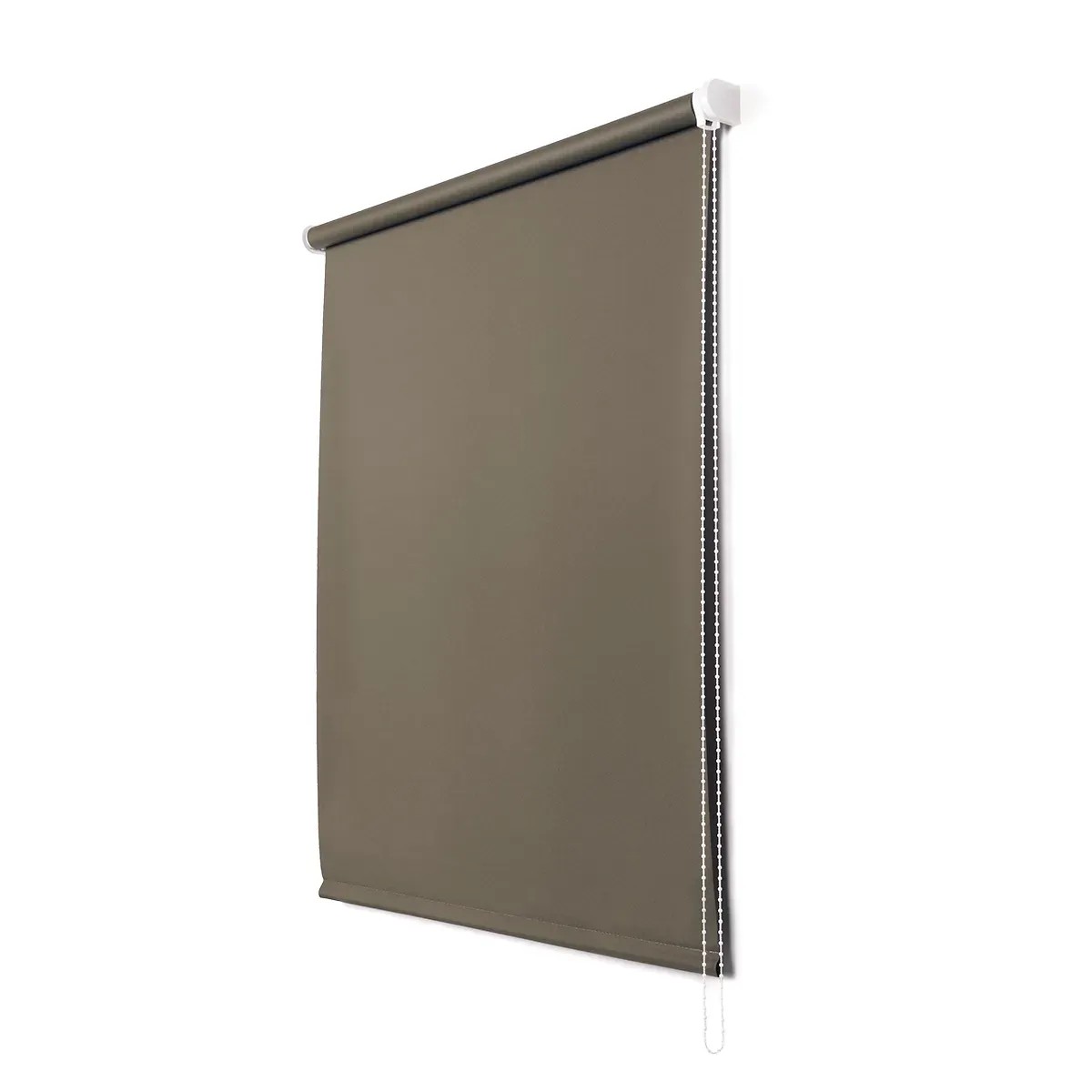 Tenda a rullo, oscurante, 100% poliestere, colore tortora, dimensione 60x180 cm. Adatta per il montaggio a parete o a soffitto (staffe in dotazione) e risulta facilmente lavabile con l`aiuto di un panno umido..