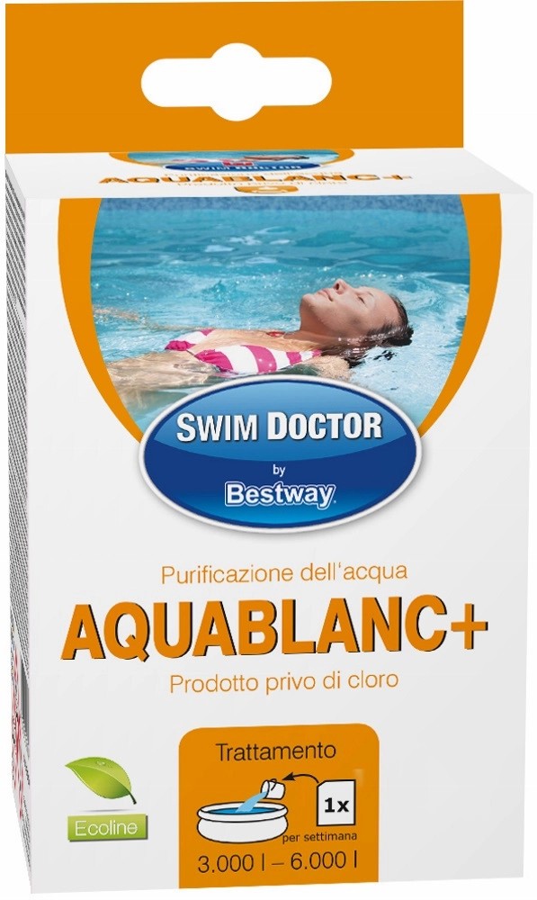 Purificatore per piscine Aquablanc+ ideale per mantenere l`igiene della propria piscina senza ricorrere al cloro, è studiato per piscine usate da bambini. È un purificatore privo di cloro per piscine da 3.000 a 6.000 l. Contiene 5 bustine.