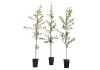 Origine: Bacino mediterraneo. Albero sempreverde tra i più longevi che esistano (anche 2000 anni), che molto lentamente raggiunge i 9 m d`altezza e 5-7 m in larghezza, anche più se trova lo spazio. In età giovanile ha un tronco diritto, ricoperto da una corteccia liscia e grigio-argentea che con l`età diviene contorta, nodosa, scura, e spesso cariata. Foglie: persistenti, opposte, coriacee, ovali o strettamente ovali, di colore verde glauco e glabre sopra, più chiare e coperte da un tomento argenteo nella pagina inferiore. Fiori: sbocciano da aprile a giugno e sono bianchi, non molto appariscenti, ma profumati, riuniti in grappoli all`ascella delle foglie. Frutti - Olive: botanicamente parlando sono drupe ovoidali che contengono un solo seme (nocciolo) ed hanno un colore verde che diviene nero brillante quando maturano, in autunno. L`olio si ottiene mediante la loro compressione. Coltivazione: l`Olivo ama il sole e teme gli eccessi di umidità, vuole terreni profondi, asciutti, ben permeabili, se possibile esposti a sud e protetti dai forti venti. Sopporta la siccità. Rusticità: i botanici lo assegnano alla zona 9 ma l`esperienza insegna che negli ultimi 20 anni gli Olivi hanno sopportato temperature di -7/-10°C non proprio sporadiche e non hanno subito danni.