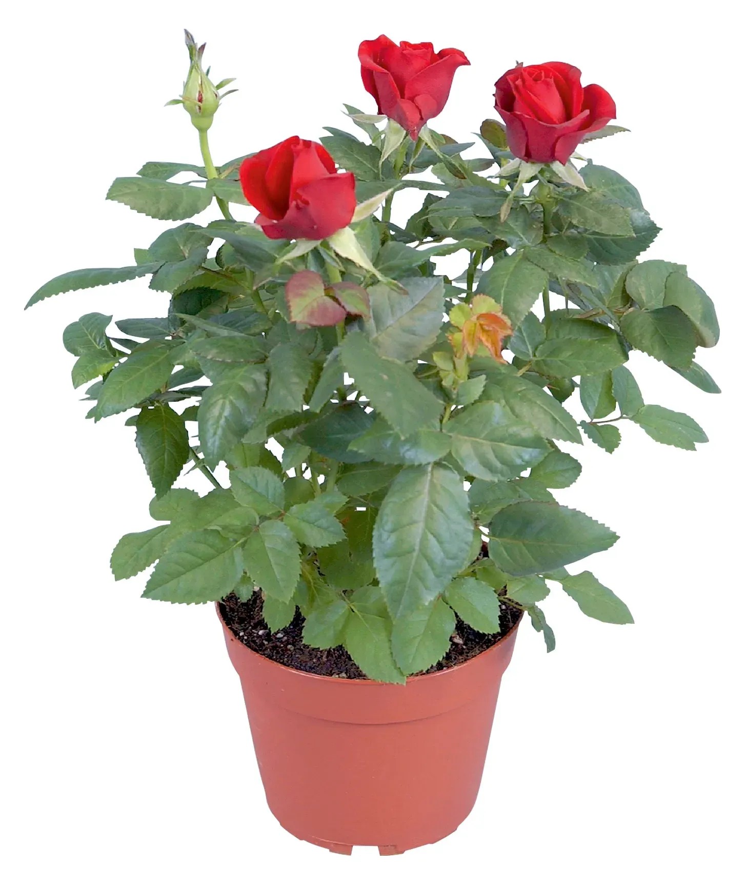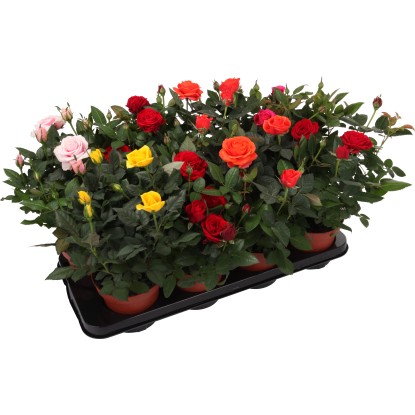 Roselline in vaso Ø12 cm, disponibili in vari colori. Questo tipo di rose fioriscono da giugno ad agosto ed hanno bisgono di un`esposizione soleggiata.