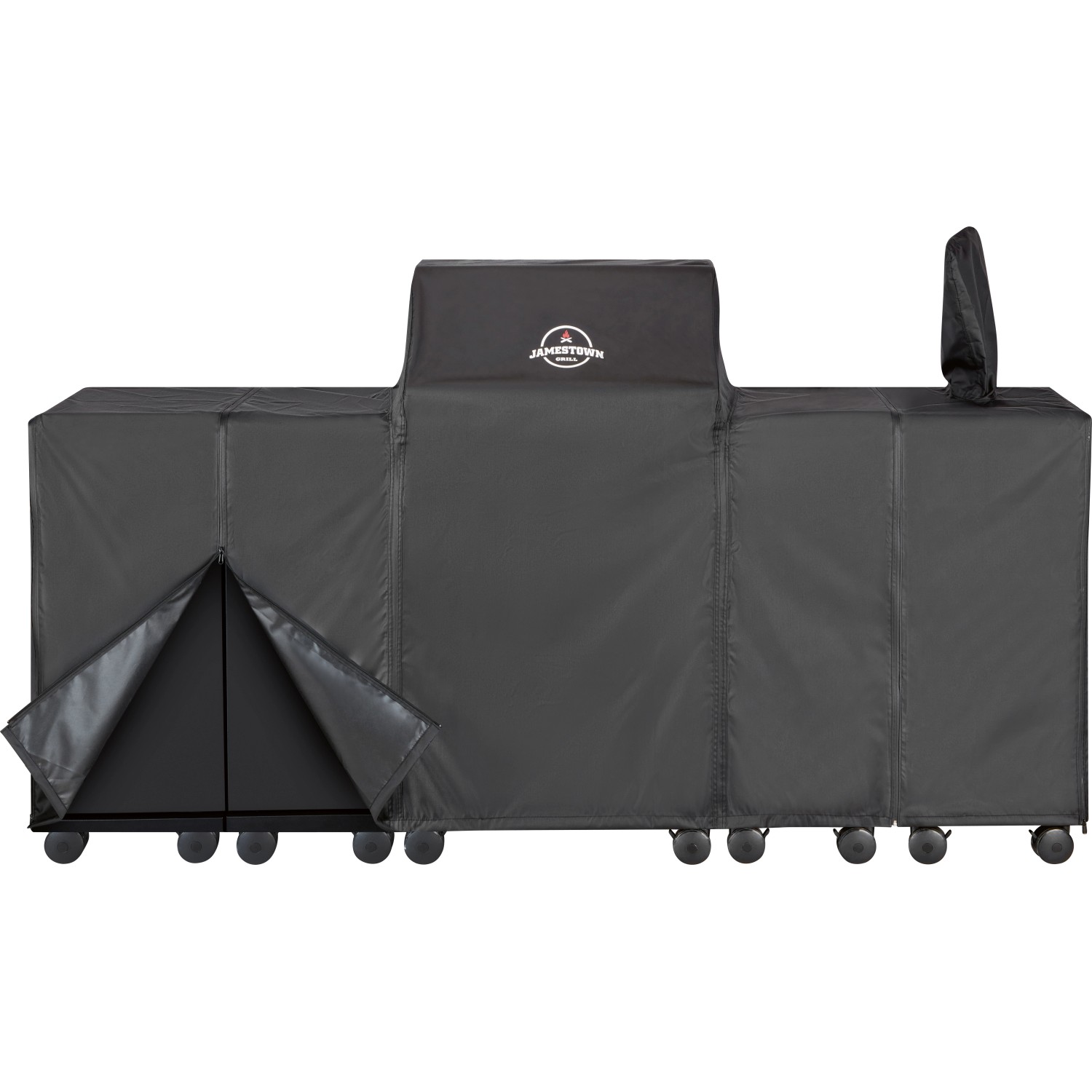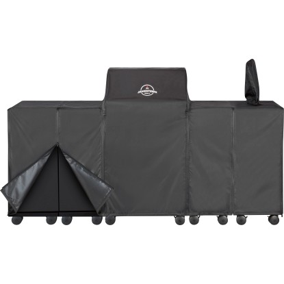 La copertura è dotata di quattro magneti adesivi cuciti sia sul davanti che sul retro, garantendo una tenuta sicura anche in caso di vento. Inoltre, le cerniere su entrambi i lati permettono di combinare facilmente più coperture Jamestown della serie per creare una protezione completa per la tua cucina esterna.