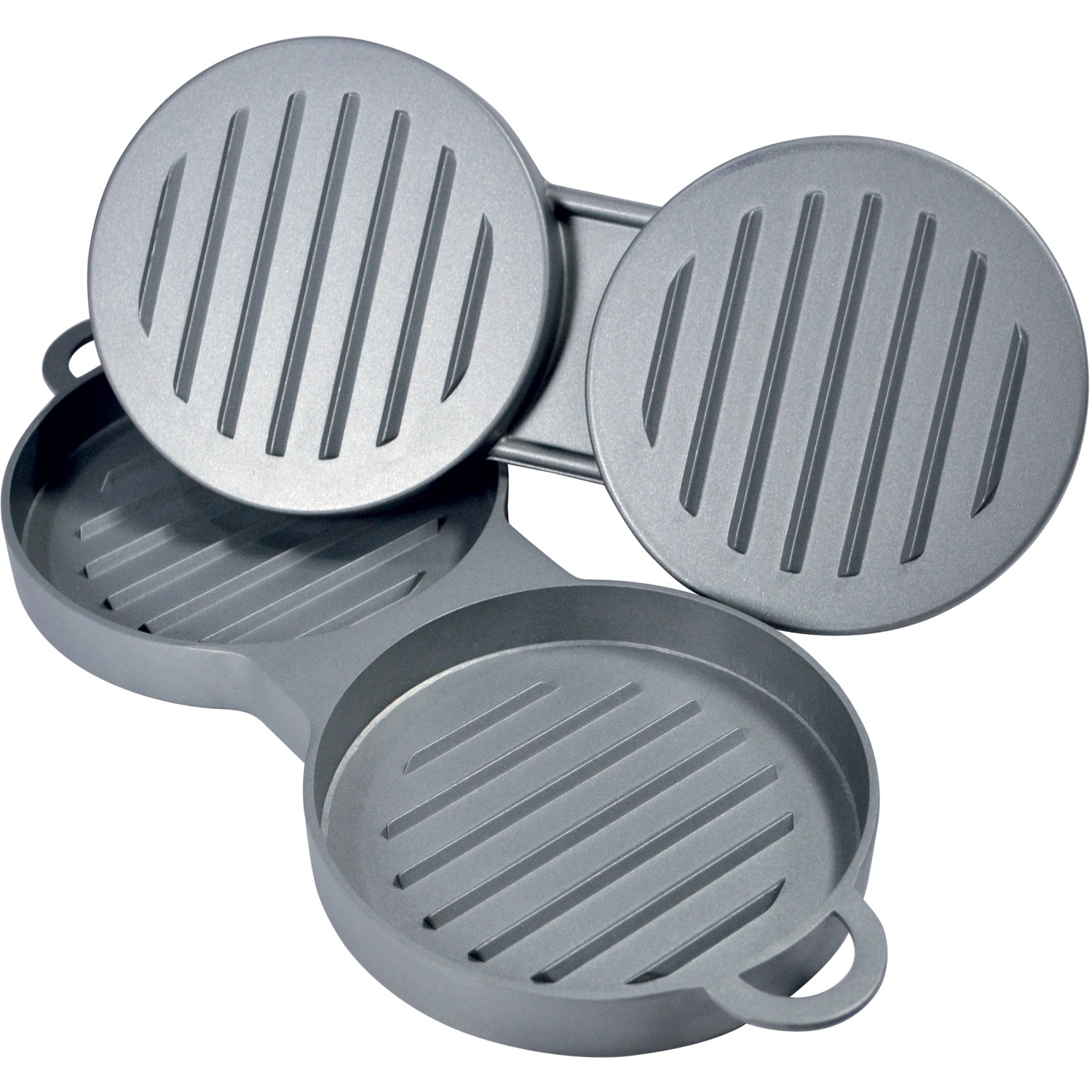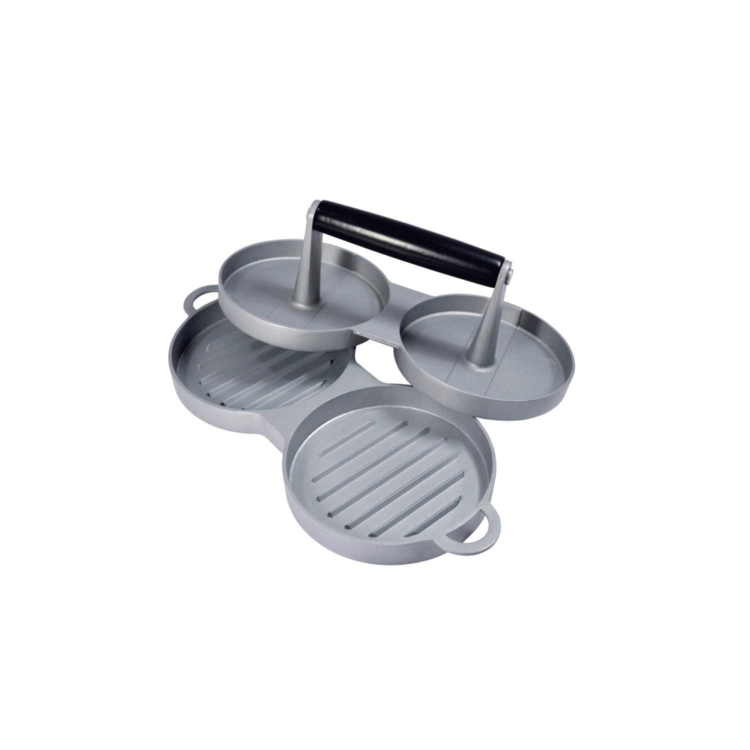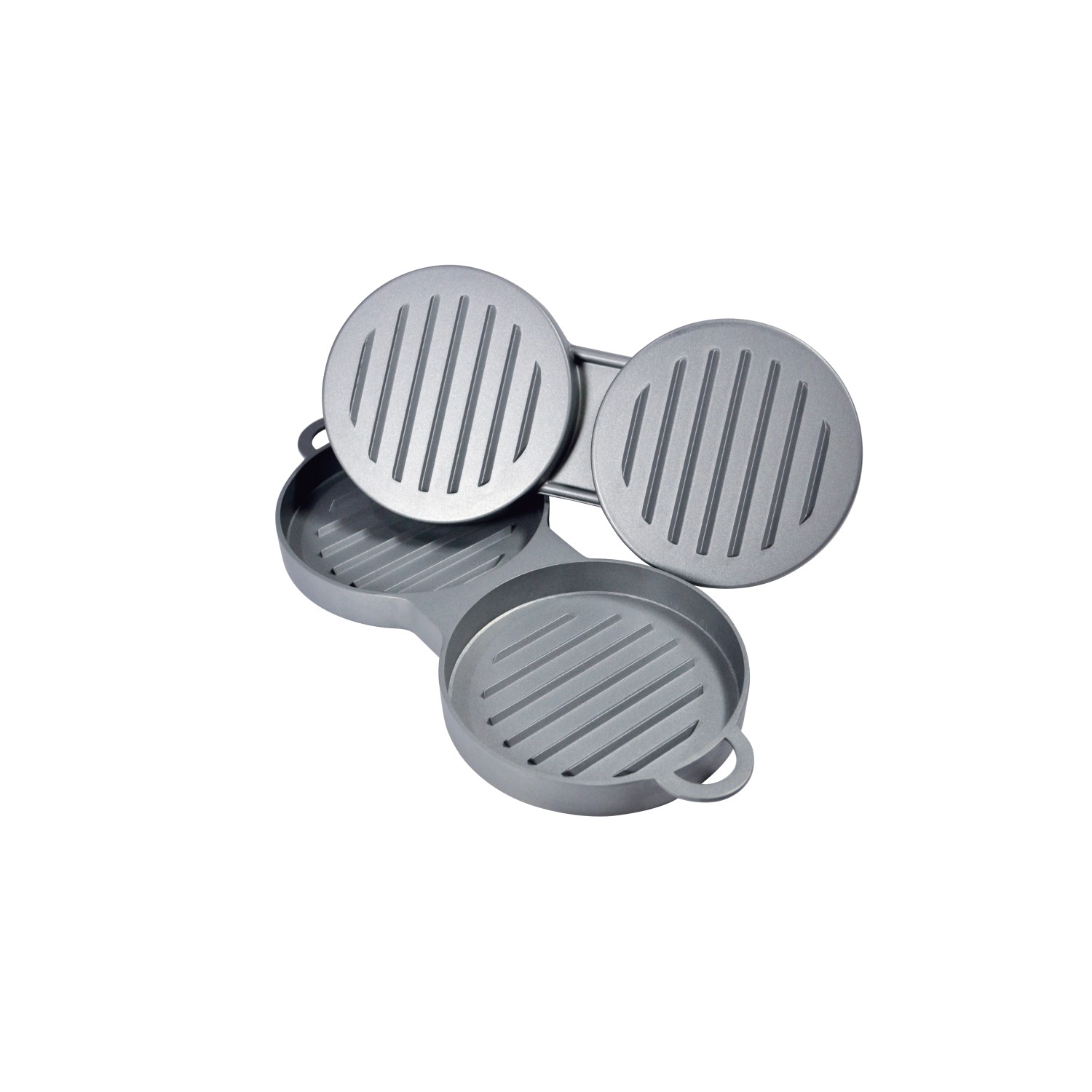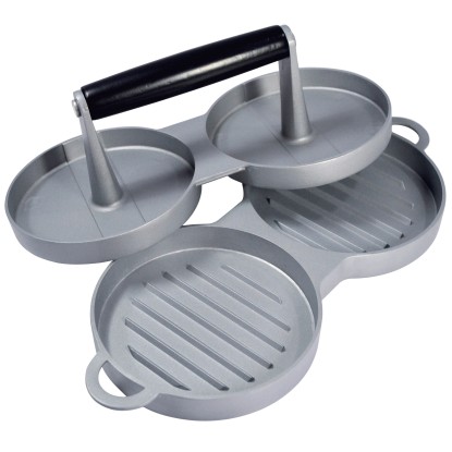 Pressa per hamburger OBI Outdoor Living ideale per preparare hamburger o polpette in modo veloce e dalla forma perfetta. Robusto e facile da usare, dotato di larga impugnatura in legno. Adatto per preparare due hamburger alla volta.