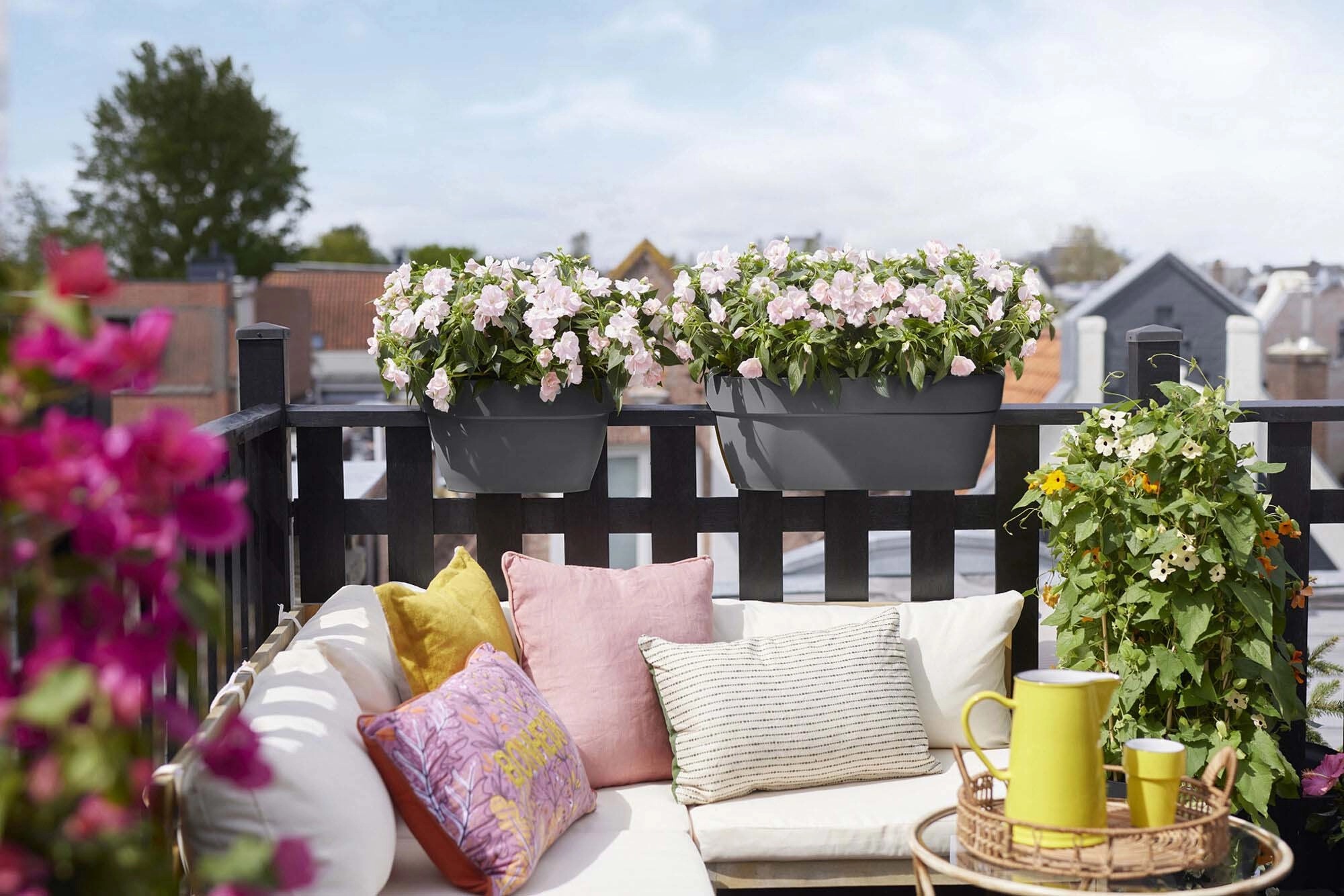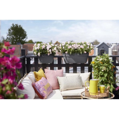 Vuoi rendere il tuo balcone più verde? Allora il vaso vibia campana fa proprio al caso tuo. Questi vasi da balcone possono essere utilizzati su quasi tutti i balconi in quanto sono adatti a ringhiere con una larghezza massima di 6,5 cm. Il tubo di troppopieno garantisce il drenaggio dell`acqua in eccesso e ti consente di goderti le tue piante più a lungo. E quel che è certo è che questo vaso è amico della natura. È realizzato in plastica riciclata al 100%, è prodotto con energia eolica ed è completamente riciclabile. Mai più acqua in eccesso Tutti i prodotti per balcone vibia campana sono dotati di un tubo di troppopieno. In questo modo l`acqua in eccesso può defluire e le radici di piante e fiori non si bagnano troppo. Perfetto dopo forti piogge o in caso di annaffiature eccessive. Adatto a ogni stile Con le sue morbide forme arrotondate e la sua texture fresca e naturale, il vibia campana è un complemento perfetto per il tuo balcone. Questo vaso è inoltre disponibile in una vasta gamma di colori trendy adatti allo stile di qualsiasi balcone. Crea un`atmosfera tranquilla con l`antracite o il bianco seta oppure ravviva il tuo balcone con il giallo miele. Sempre stabile Il dorso piatto consente al vaso di rimanere sempre stabile in posizione. Goditi le tue piante, in piena tranquillità.